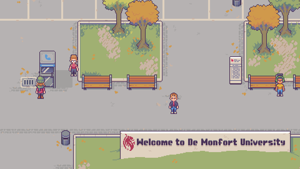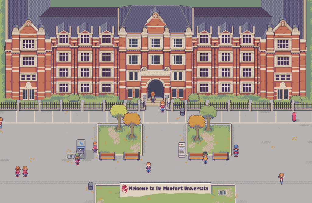 DMUniverse transforms the De Montfort University (DMU) campus in Leicester into a vibrant, retro 8-bit video game. Designed to provide an authentic glimpse into student life, this game invites players to explore the campus through a pixelated aesthetic, evoking the nostalgia of classic games.